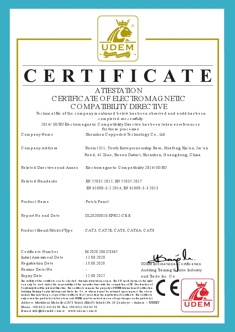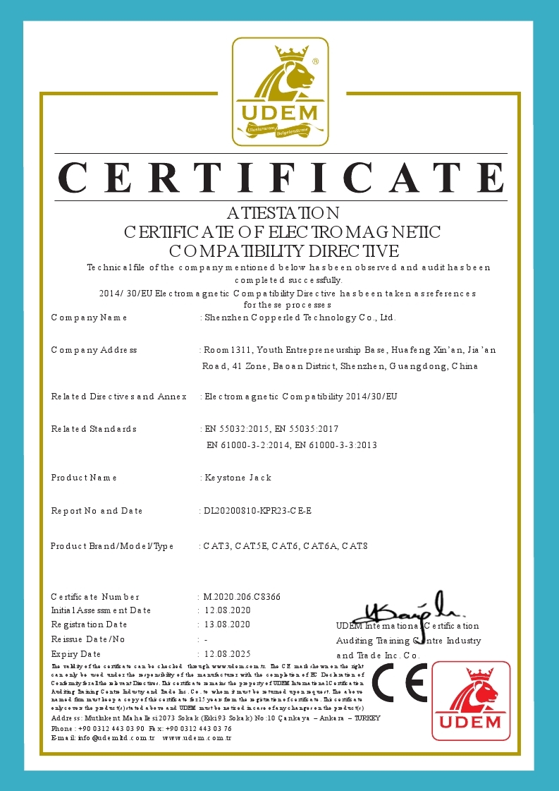 Shenzhen Copperled is a professional manufacturer and exporter of Structured Cabling Systems. Our company was founded in 2006, which locates in HK and with a branch office in Shenzhen China and the manufacturing facilities in Ningbo.