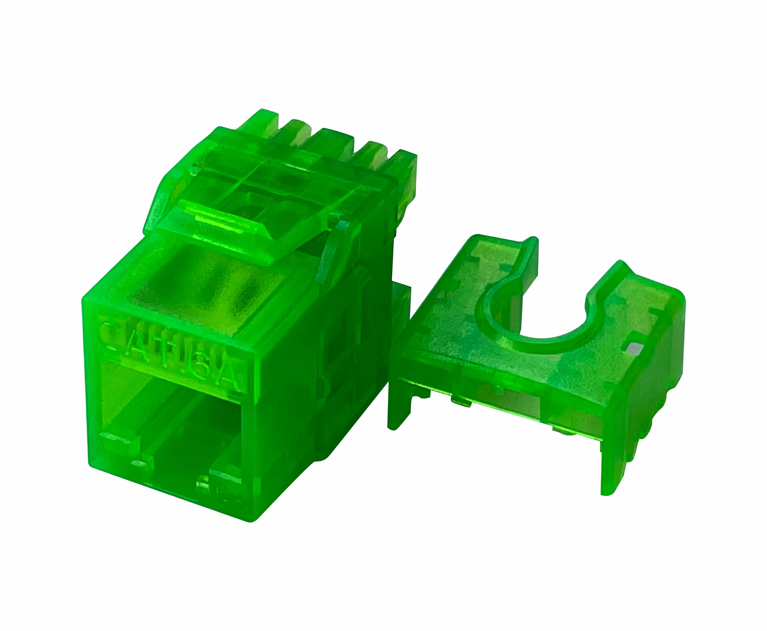 Fitting for Cat.6A Cabling system, can also be used in Cat.6 and Cat.5e cabling system.